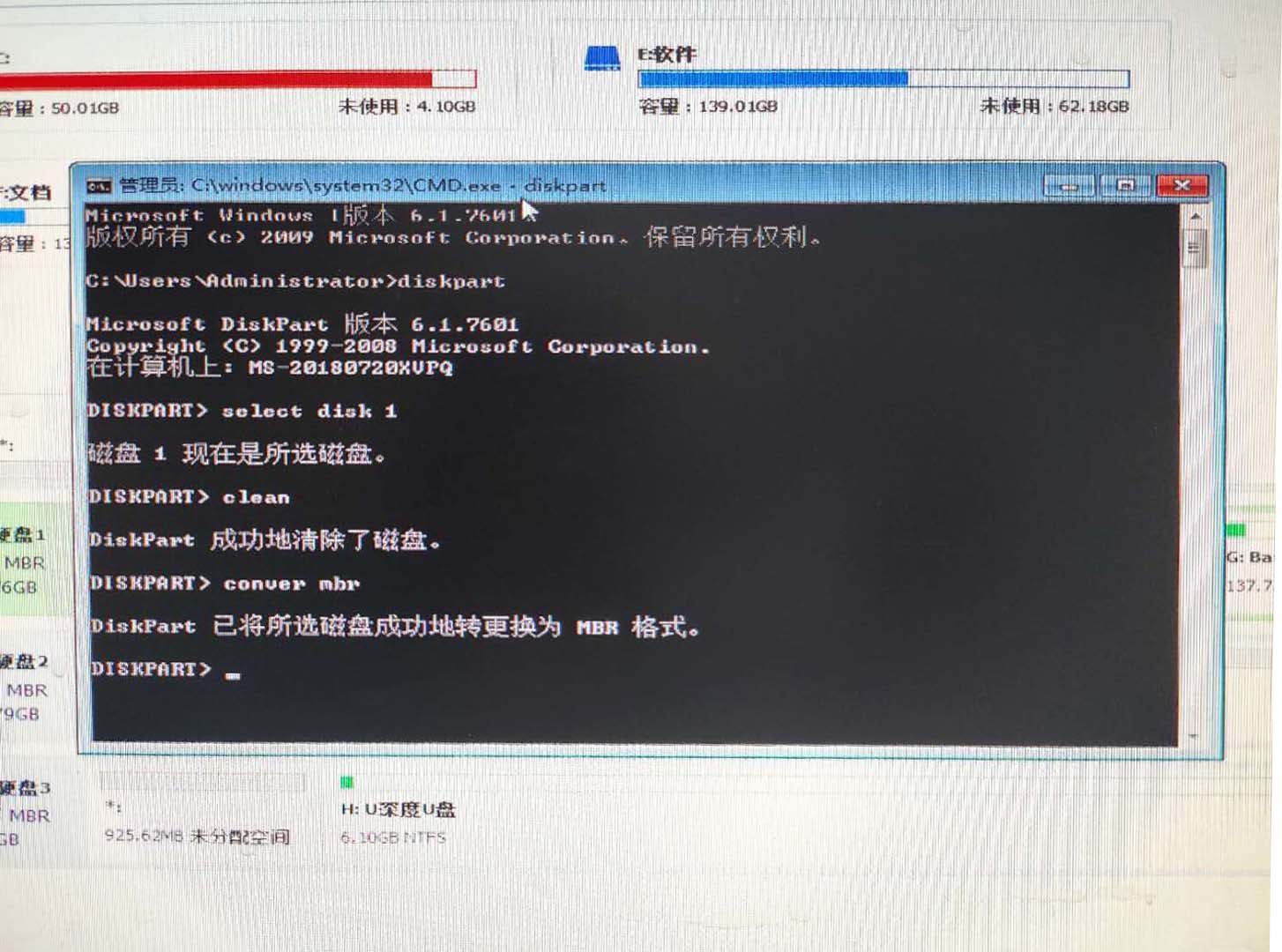 - 关掉CMD窗口,刷新重新分区,重新安装系统即可。