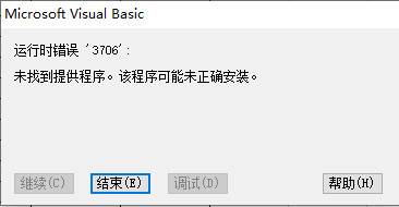 电脑重新安装后,之前运行好好的excel VBA程序突然提示报错,提示“运行时错误,"3706":未找到提供程序,该程序可能未正确安装。”
